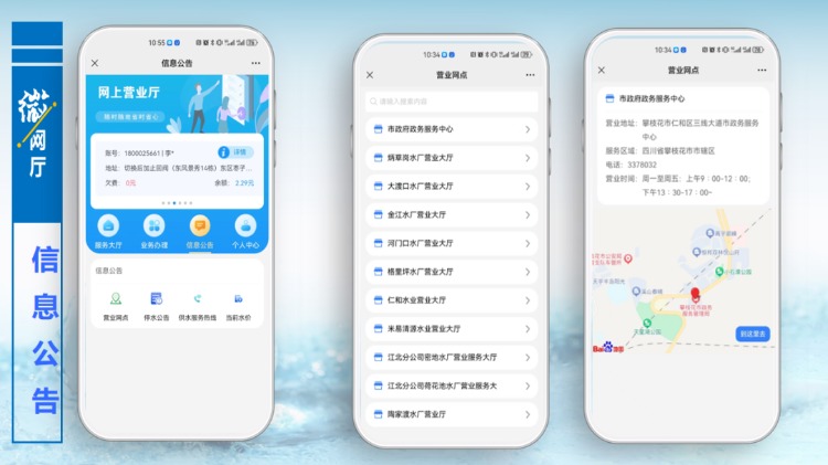 新年伊始,攀枝花市水務(wù)集團(tuán)便民服務(wù)再添新舉措,“微信營業(yè)廳”(以下簡稱“微網(wǎng)廳”)正式開通運(yùn)行,用戶只需關(guān)注二維碼,動(dòng)動(dòng)手指就可以在“微信營業(yè)廳”辦理水費(fèi)繳納、用水報(bào)裝、更名過戶、信息查詢等各項(xiàng)用水業(yè)務(wù),為您提供更加專業(yè)、高效的優(yōu)質(zhì)服務(wù),實(shí)現(xiàn)辦事“免跑腿”、溝通“零距離”。下面,跟隨小編一起去看看“微網(wǎng)廳”的操作流程吧!